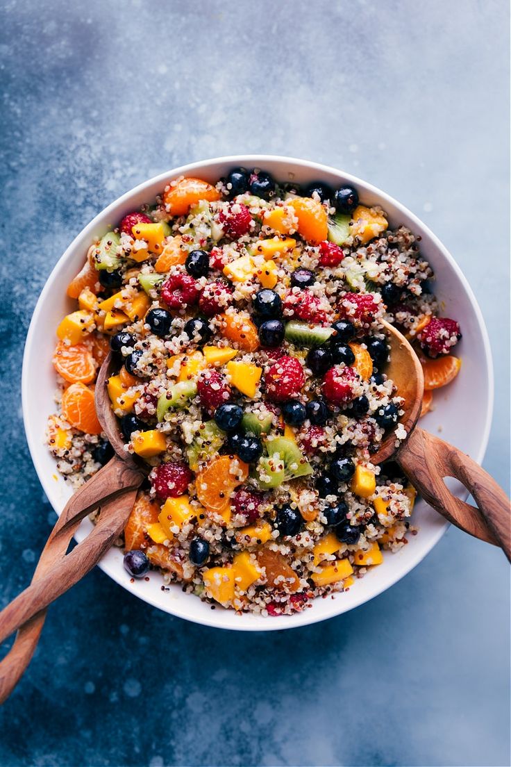 This salad is a perfect balance of sweet and tangy flavors. Juicy fruits and fluffy quinoa make it refreshing, satisfying, and great for warm days.